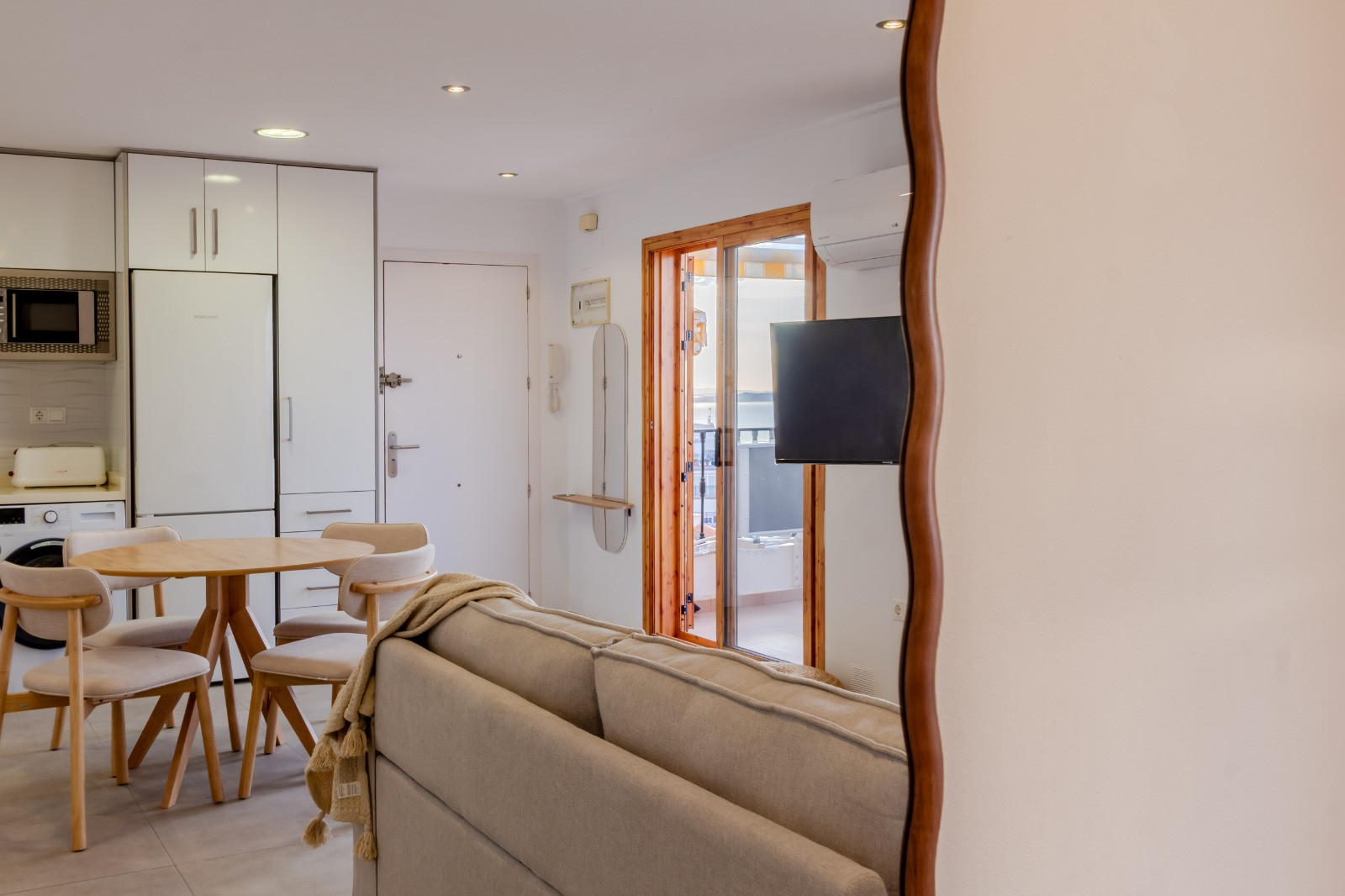 El apartamento en Santa Pola posee 2 dormitorio(s) y capacidad para 4 personas. Alojamiento de 50 m². Dispone de 10 m² de terraza, lavadora, acceso internet (wifi), aire acondicionado, piscina comunitaria+infantil, parking aire libre, 1 Televisor.La cocina americana, está equipada con nevera, microondas, horno, congelador, vajilla/cubertería, utensilios/cocina, cafetera y hervidor de agua.