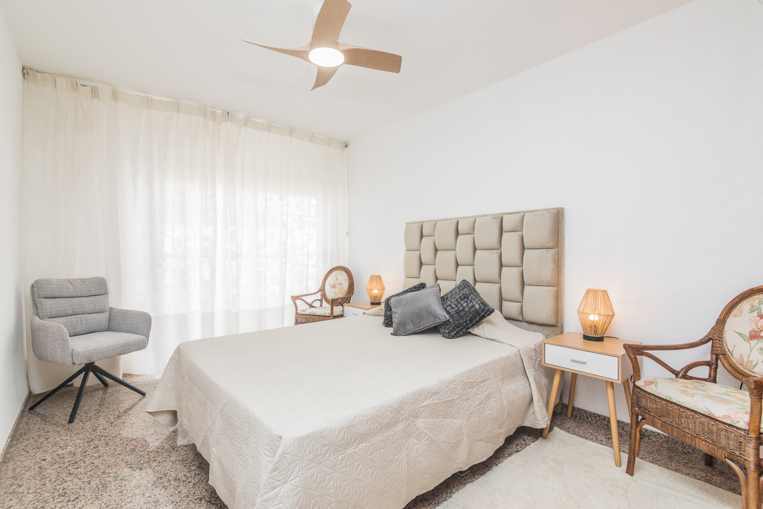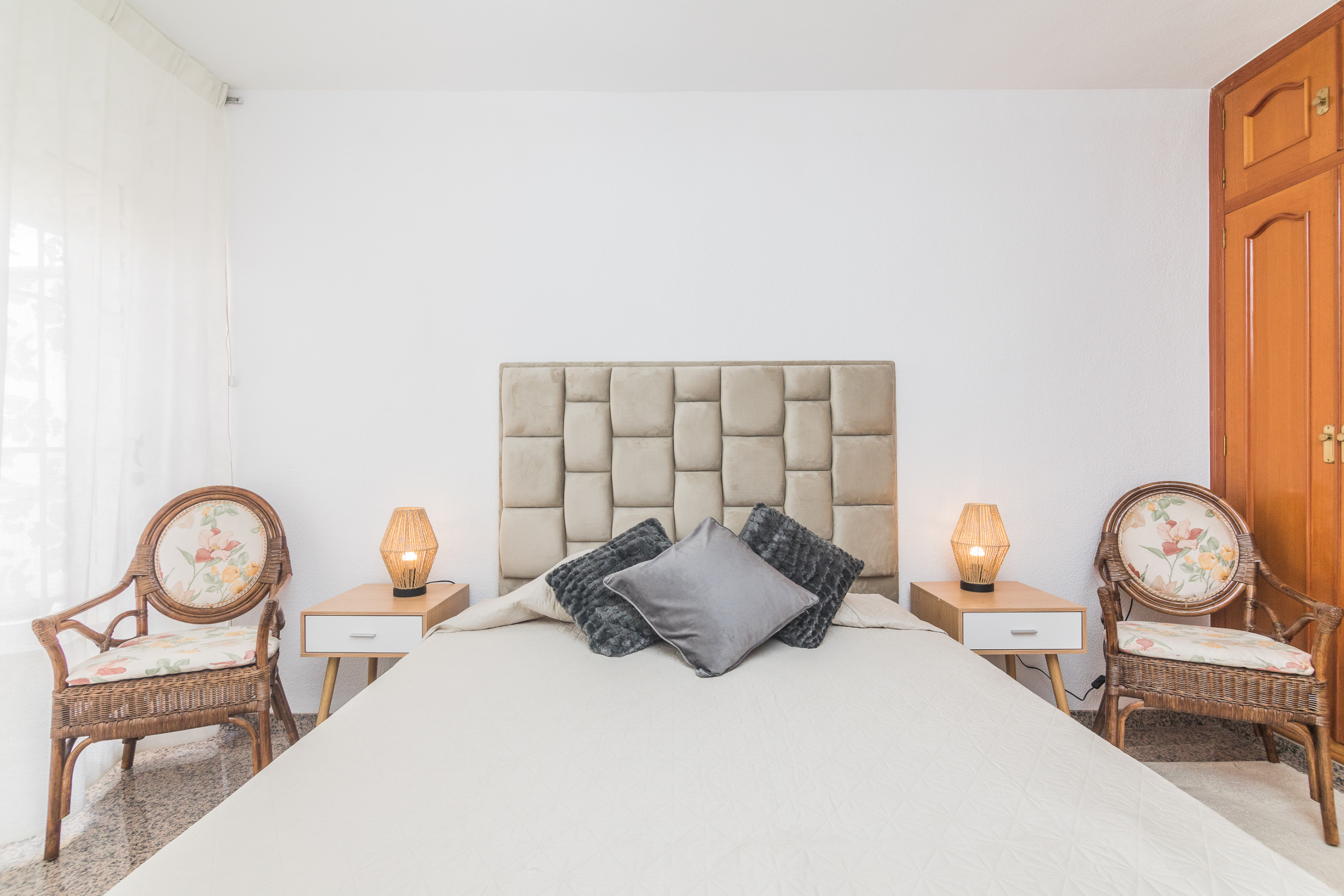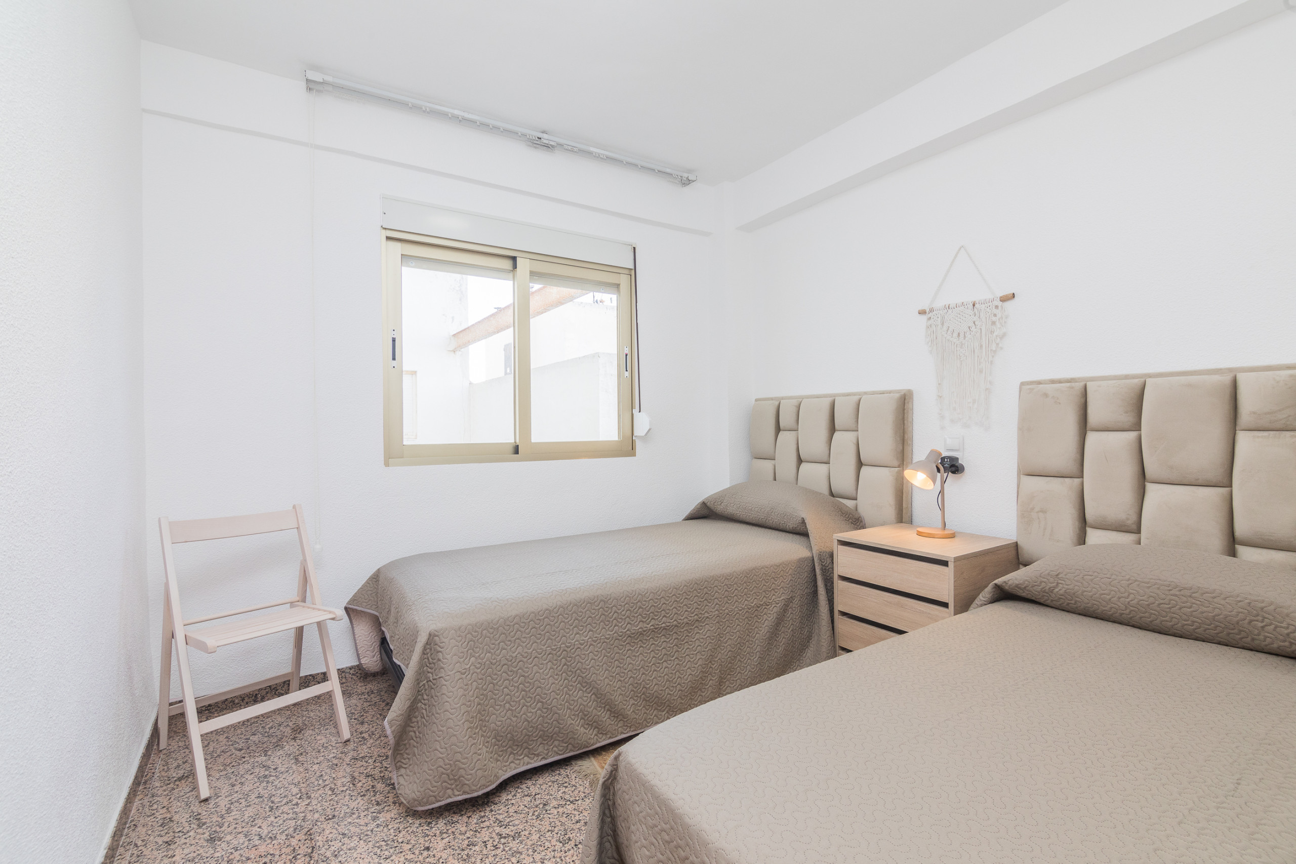 The apartment in santa pola has 4 bedrooms and has capacity for 8 people. The apartment is 80 m². The property is located 0 m from the sand beach. The accommodation is equipped with the following items: lift, washing machine, internet (Wi-Fi), hair dryer, balcony, heat pump, air-conditioned, 1 TV. In the independent kitchen, refrigerator, microwave, oven, freezer, coffee machine, toaster and kettle are provided.
